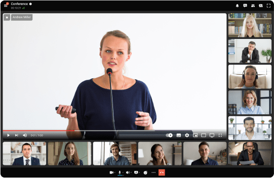 Participants can see and hear only the speakers appointed by conference moderators.