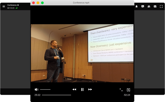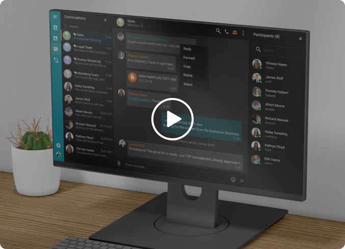 TrueConf Server is a secure corporate collaboration solution that is deployed on your company's servers, guaranteeing complete security for all communications. Exchange messages with colleagues in personal and group chats, and host online meetings with up to 1500 participants!!