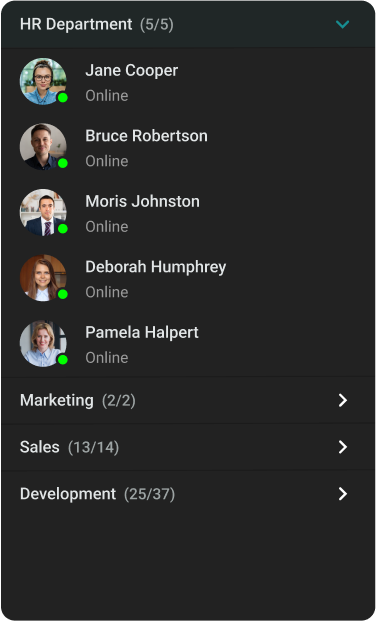 Add your personal touch to your app! With TrueConf, you can choose between light and dark themes, set your preferred video layout background or frame colors.